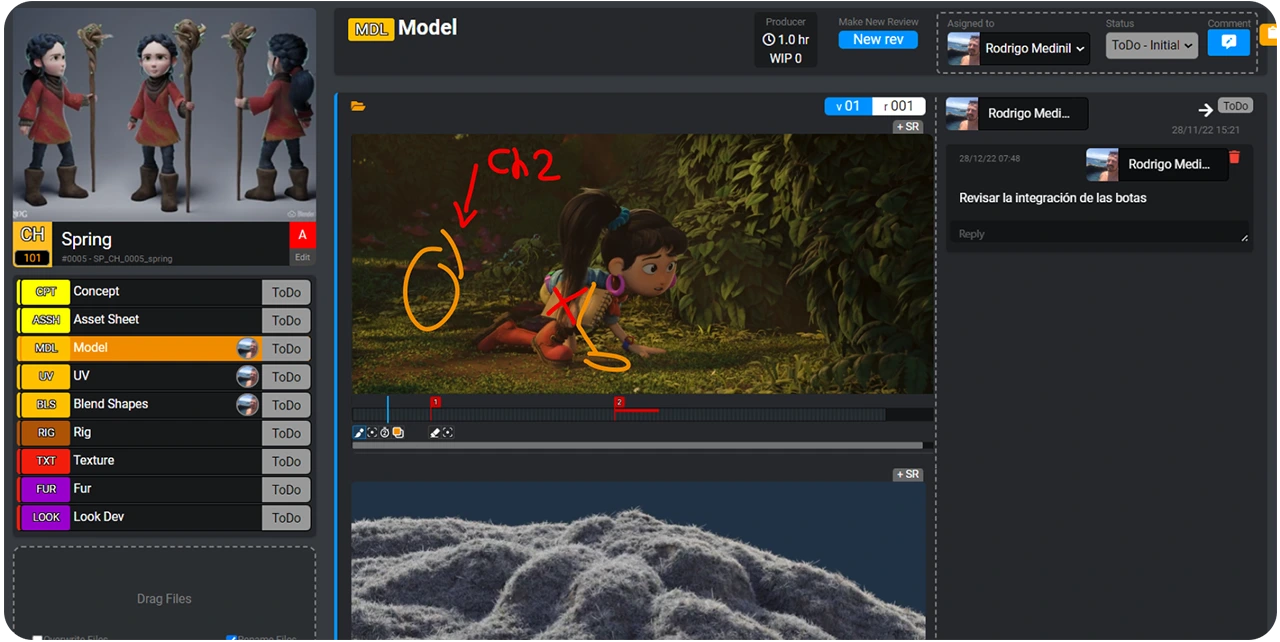 Un lugar donde se concentra todo el feedback sobre el material de forma segmentada para que se entienda de forma contextualizado. Accesible en todo momento para que artistas, supervisores y directores puedan trabajar con la información en tiempo real.A place where all feedback is gathered in a segmented manner so that it can be understood in a contextualized way. Accessible at all times so that artists, supervisors, and directors can work with information in real-time.