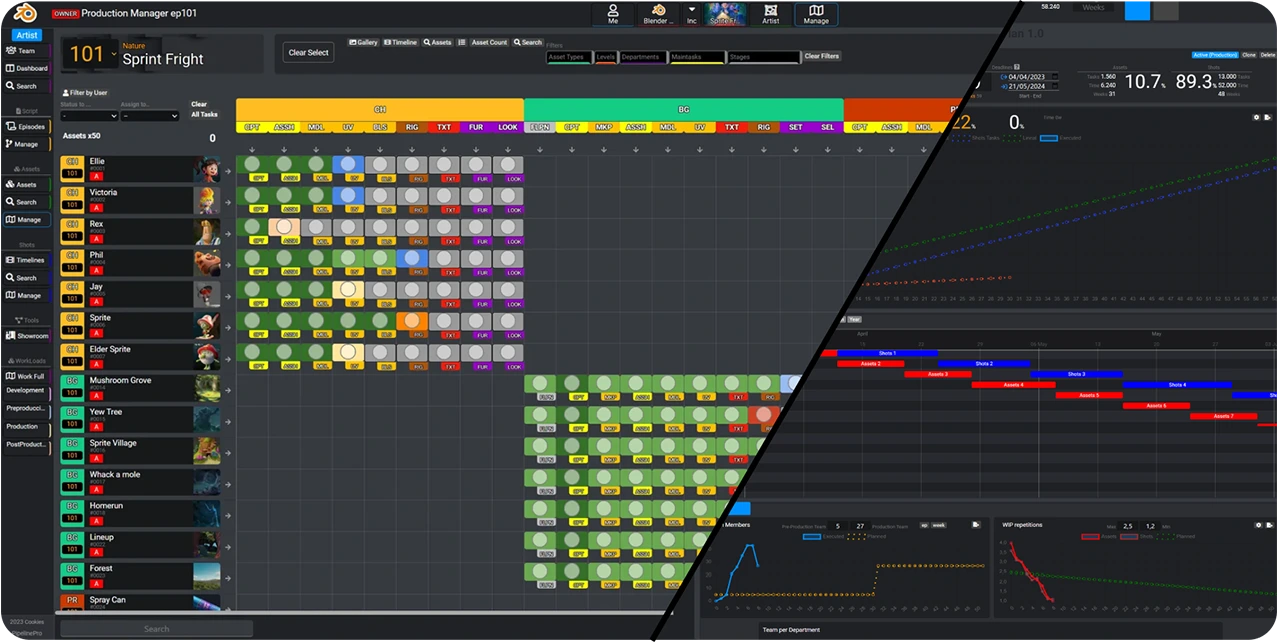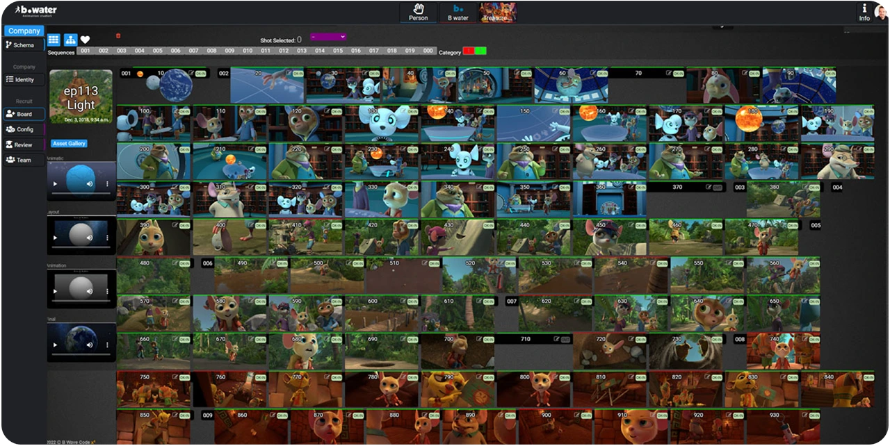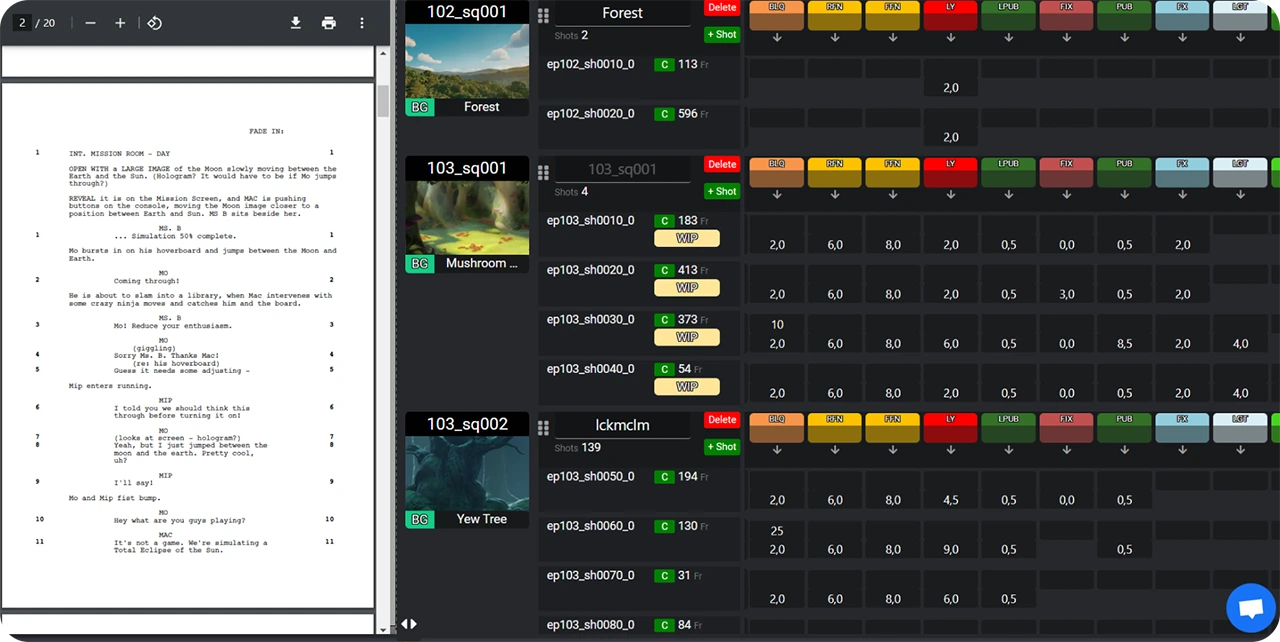 Apostamos por un set de herramientas para tener capacidades de gestión de las historias a nivel narrativo para contar las mejores historias. Control de guiones, revisión de animáticas, Script color, control de continuidad y visionado de dailies.We rely on a set of tools to have management capabilities of stories at a narrative level to tell the best stories. Control of scripts, review of animatics, script color, continuity control, and viewing of dailies.