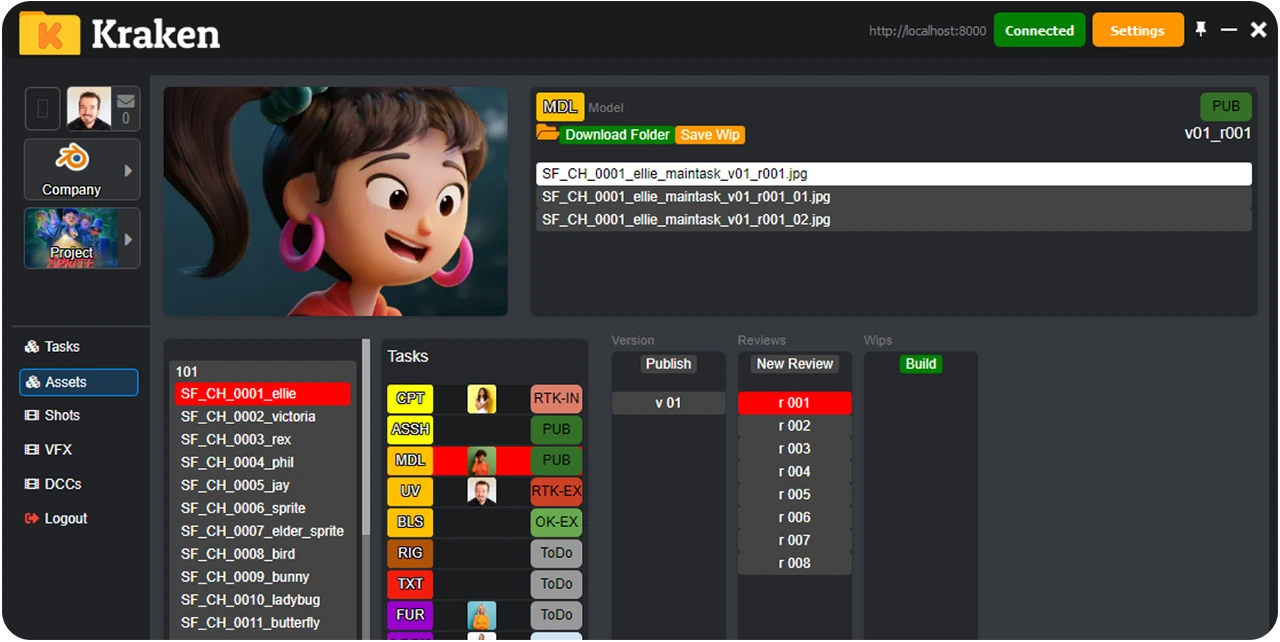 Gestiona todos los assets de tus producciones desde un único lugar. Creación de ficheros basado en naming convention, reutilización de asset y búsquedas avanzadas para tener a todos tus artistas trabajando juntos.Manage all your production assets from a single place. File creation based on naming convention, asset reuse, and advanced searches to have all your artists working together.